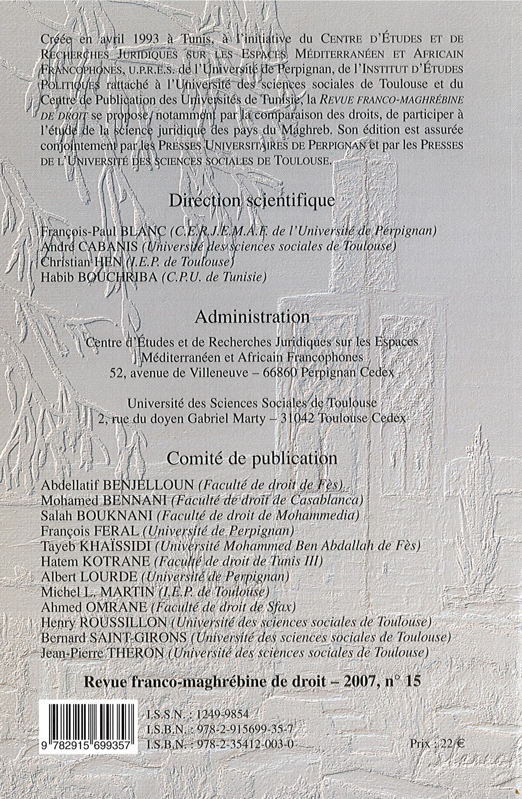 Revue franco-maghrébine de droit, n°15 (2007)