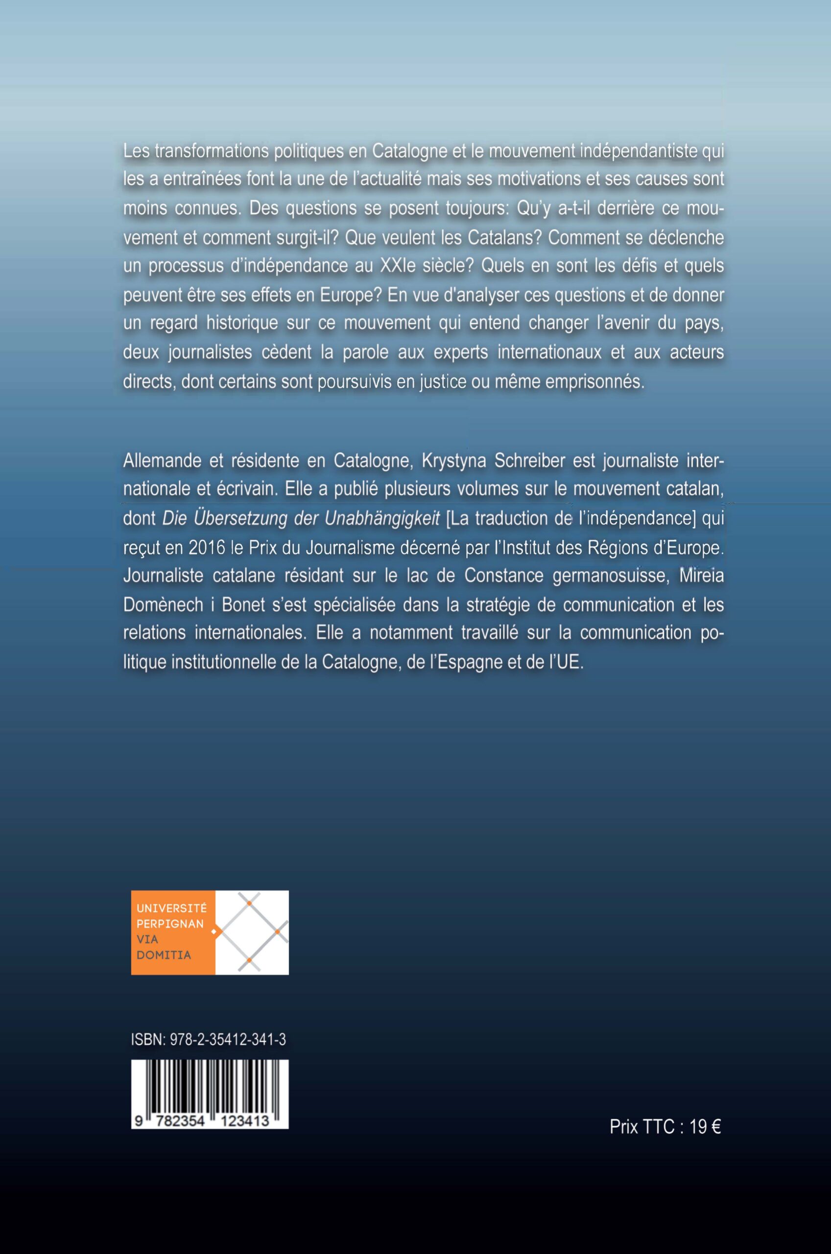 Les transformations politiques en Catalogne et le mouvement indépendantiste qui les a entraînées font la une de l’actualité mais ses motivations et ses causes sont moins connues. Des questions se posent toujours : Qu’y a-t-il derrière ce mouvement et comment surgit-il ? Que veulent les Catalans ? Comment se déclenche un processus d’indépendance au XXIe siècle ? Quels en sont les défis et quels peuvent être ses effets en Europe ? En vue d’analyser ces questions et de donner un regard historique sur ce mouvement qui entend changer l’avenir du pays, deux journalistes cèdent la parole aux experts internationaux et aux acteurs directs, dont certains sont poursuivis en justice ou même emprisonnés. Allemande et résidente en Catalogne, Krystyna Schreiber est journaliste internationale et écrivain. Elle a publié plusieurs volumes sur le mouvement catalan, dont Die Übersetzung der Unabhängigkeit [La traduction de l’indépendance] qui reçut en 2016 le Prix du Journalisme décerné par l’Institut des Régions d’Europe. Journaliste catalane résidant sur le lac de Constance germanosuisse, Mireia Domènech i Bonet s’est spécialisée dans la stratégie de communication et les relations internationales. Elle a notamment travaillé sur la communication politique institutionnelle de la Catalogne, de l’Espagne et de l’UE.