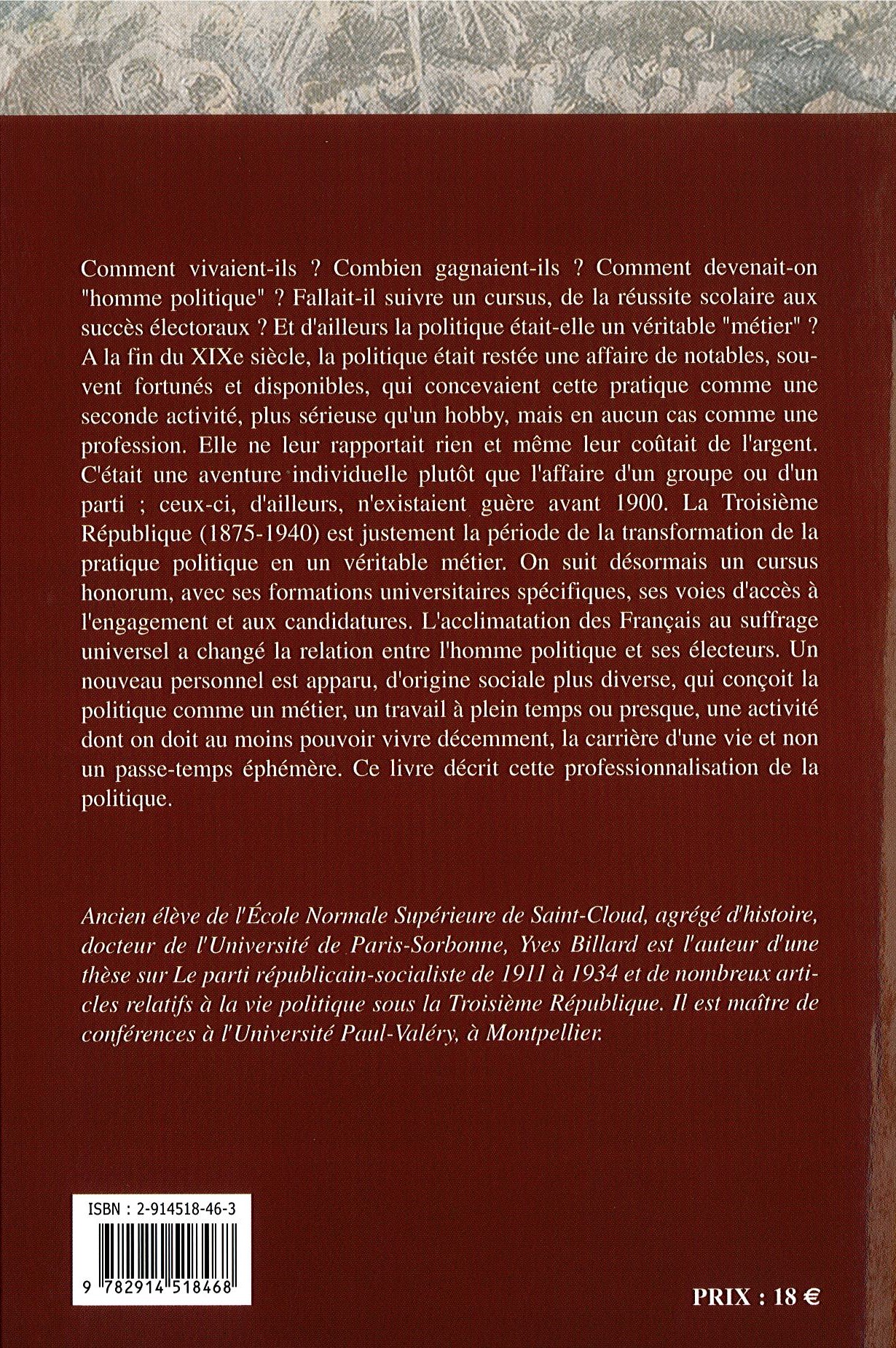 Cette étude décrit la professionnalisation de la politique sous la IIIe République (1875-1940). L’acclimatation des Français au suffrage universel a changé la relation entre l’homme politique et ses électeurs. Un nouveau personnel apparaît, qui conçoit la politique comme la carrière d’une vie et non un passe-temps éphémère.