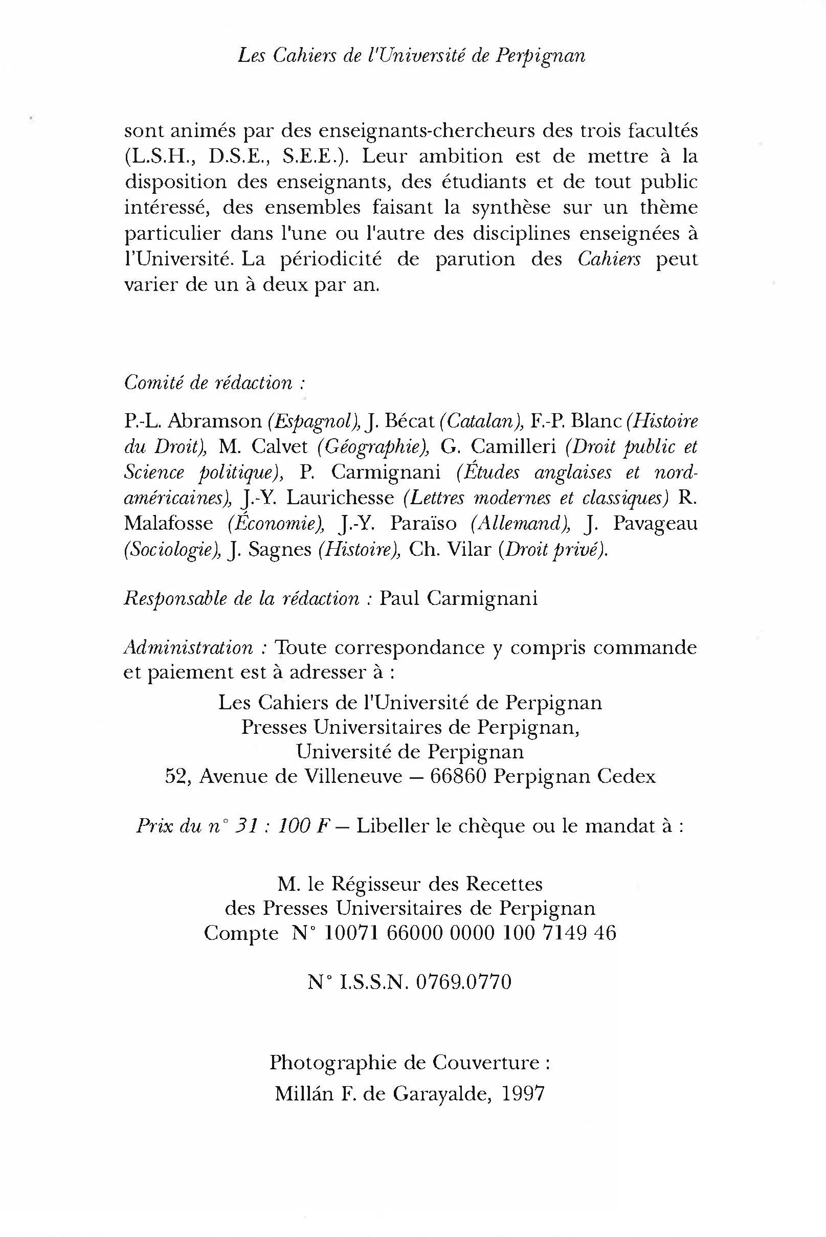 Cahiers de l’Université de Perpignan, n°31 (2000)