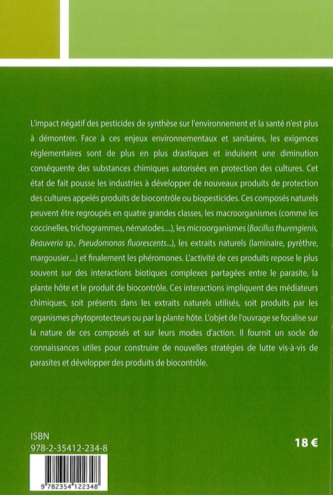 L’ouvrage a pour objet de présenter les recherches réalisées sur les médiateurs chimiques impliqués dans les interactions entre la plante cultivée, le phytoagresseur et la solution de biocontrôle, dans le cadre de la protection des cultures. L’approche de ces mécanismes par l’étude des métabolites impliqués est originale et à notre connaissance n’est proposée dans aucun autre ouvrage. Après une introduction générale illustrée, des articles scientifiques sélectionnés à l’issu du congrès International « Natural Products & Biocontrol » de septembre 2012 seront proposés en anglais. Cet ouvrage propose une nouvelle classification des produits de biocontrôle et doit permettre au lecteur de comprendre leurs mode d’action et de connaitre les origines naturelles des produits actuels et futurs proposés aux consommateurs. Les illustrations de l’ouvrage ont toute été crées spécifiquement.